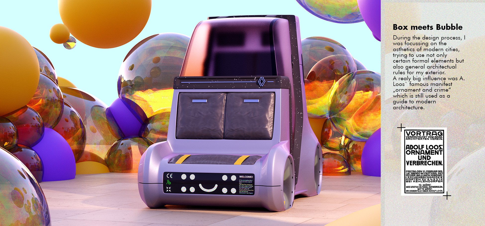 In the third semester, the brief was to design a city car for Renault. My approach focused on minimizing the vehicle’s spatial footprint while maximizing comfort, using Le Corbusier’s Modulor system as a proportional framework.